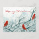 Red Cardinal Birds Winter Trees Merry Christmas Holiday Postcard
