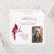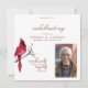 A hand painted watercolor red cardinal on a loving celebration of life invitation
