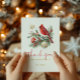 Red Cardinal Christmas Bouquet Personalized Text Thank You Card