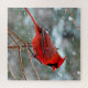 Red Cardinal in the snow, colourful birch perched on a tree limb