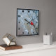 A clock with a scenic nature photograph featuring a bright red cardinal. Contrasted against a winter backdrop with snow gently falling down.