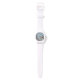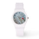 A watch with a scenic nature photograph featuring a bright red cardinal. Contrasted against an outdoorsy winter backdrop with snow gently falling down.
