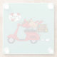 Red Cardinal Lovers on Scooter Glass Coaster
