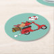 Red Cardinal Lovers on Scooter Round Paper Coaster