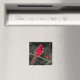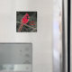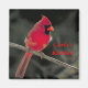 A kitchen magnet that features a photograph of a red cardinal sitting on a tree branch. There is a customisable spot to put your name. Any nature lover would love this magnet.