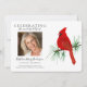 Invite friends and family to join you in celebrating the wonderful life of your loved one with this simple photo memorial service announcement with a striking red cardinal bird atop a branch.