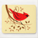 Red cardinal perched on branch swirls with leaves in autumn colours and customisable background