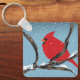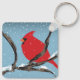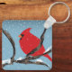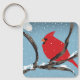 This design is a red cardinal on a branch. The bird looks beautiful sitting on the branch in winter. This red cardinal on a branch design looks great on this Keychain