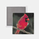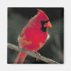 A crisp clearly detailed beautiful nature photograph. A bright red northern cardinal perched on a tree branch. You can see tufts of downy feathers gently blowing in the wind. Fluffy and cute!