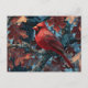 A vibrant red cardinal sits on a branch surrounded by richly coloured autumn oak leaves. The intricate foliage and detailed textures create a stunning natural scene showcasing the bird's beauty and a seasonal atmosphere.