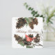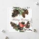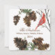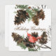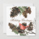 A beautiful Christmas holiday card to send to all your friends and family members, features a square rounded corner card with a white background that you can change to the colour of your choice, pine cones, tree branches, a red cardinal, and customisable text that reads Holiday Greetings on the front, the same customisable white background, pine cones, red cardinal, and branches with a customisable area to add your family name, first names, and current year on back.