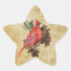 Red Cardinal Pine Cones Christmas holiday star stickers features a rustic brown textured look background with pine cones and a red cardinal. This star shaped red cardinal sticker matches our Red Cardinal Pine Cones holiday cards, postage, and return address labels!