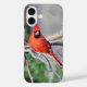 Eye catching red Northern Cardinal featured on handy iPhone case.