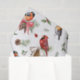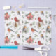Charming Christmas holiday tissue paper featuring a watercolor images of red cardinals, robin nesting on pinecones with white and red bows and holly and fir repeated throughout the pattern.
