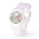 "red cardinal bird clock", "northern common cardinal", "green forest woodland watch", "stained glass style art", "stain glass woods nature", "beautiful american canadian animals", "pretty usa state bird",
