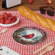 Beautiful watercolor illustration of a red cardinal perched on evergreen branches with holly berries. Set against a snowy forest and framed by a classic red and black buffalo plaid pattern, this cosy winter design captures the warmth and charm of the season.