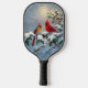 Red Cardinals and Holly in Snow Pickleball Paddle