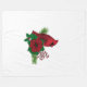 Hand-drawn red cardinal bird perching on a Christmas bouquet of fir branches poinsettia and red berries