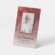 Remember the life of your loved one after their death with the elegant Red Carnation Floral Celebration of Life Funeral Pedestal Sign. This pretty flowery tribute memorial signage features a digitally painted floral photograph of red carnation flower blossom petals and the words In Remembrance. Personalise it with with the name, birth and death dates and picture of the deceased.