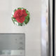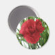 This beautiful magnet features a detailed photograph of a stunning red carnation flower. The photograph was taken using macro photography to show the beauty of this bright red bloom surrounded by green foliage.