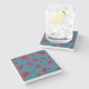 Red Carnation Pattern in Blue Stone Coaster