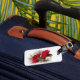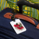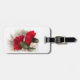 Easily customise the reverse side of this luggage tag which features an image of two brilliant red carnations set on a pearly white brocade fabric background. Make your baggage stand out on an airport carousel!