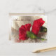 Two brilliant red carnations set on a pearly white brocade fabric background are the theme of this elegant floral save the date wedding postcard. More carnations are on the back. All text can be customised for your special occasion.