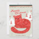 Cute Christmas card with a retro vibe featuring an illustration of a red cat and a text "Meowy Christmas". Perfect for cat lovers. Customise this card with your name. Original artwork by Marketa Stengl.