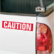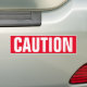 Red caution sign on vinyl sticker. Window or door sign decals. Personalizable template text and colour. Handy warning signage for home, house, business, company, shop, office building, restaurant, hotel etc. Custom danger, caution and attention notice for main entrance or exit.
