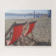 Red Chairs on Sandy Beach Jigsaw Puzzle