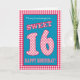 A Sweet 16th Birthday Card for a Grandaughter, with a pretty, retro feel. The letters, numbers and border are in red and white check gingham and polka dots on a denim blue background. You can change the inside message if you wish.