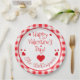 Red Check Red Hearts Whimsical Valentine's Day Paper Plate