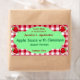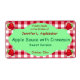 Red and white chequerboard or gingham background with a centre medallion of light green with a red apple at each corner.