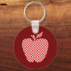 Great teacher's key chain, with graphic artwork of a red and white chequered apple, against a red background. Perfect little gift for that special teacher.