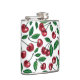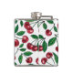 Red cherries on white hip flask