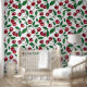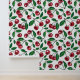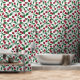 Red cherries on white wallpaper