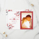 Red Cherry Blossoms Or Sakura Spring Flowers And Modern Double Happiness Double Sided Chinese Wedding Photo Save The Date Announcement Flat Card.