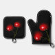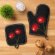 Red Cherry Custom Colour Black Oven Mitt & Pot Holder Set