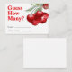 The "Red Cherry on Top Guess How Many Game Card" features a playful and vibrant red cherry design, making it a fun and interactive addition to your baby shower. Guests can guess how many candies (or other items) are inside a jar, adding excitement to the event. The charming cherry theme and bright colours make this card a perfect fit for a red cherry-themed baby shower.