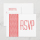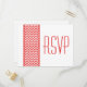 Chic and modern Chevron Border Wedding Response Postcard featuring a simple chevron pattern border in red and white. This stylish design will set the tone for an elegant wedding. Easy to customise, simply add your wedding details in the text fields provided. Click "Customise It" to find more personalisation options.