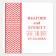 Chic and modern Chevron Border Save the Date Stickers featuring a simple chevron pattern border in red and white. This stylish design will set the tone for an elegant wedding. Easy to customise, simply add your wedding details in the text fields provided. Click "Customise It" to find more personalisation options.