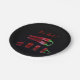 A black paper plate with a red hot chilli pepper and a customisable text "It's hot".