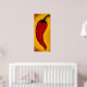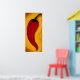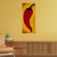 A print of an original acrylic painting of mine of a hot red Chilli Pepper on a rich golden yellow background. A vibrant piece of artwork to brighten up any location. Copyright original painting by Bridget Dedyuhina-Rymell