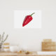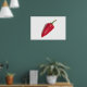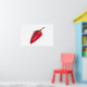 One fully ripened Jalapeno chilli pepper on a light coloured background