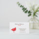 Clean and modern business card design with a single red bird silhouette in the corner. Type is set in dark brown & red on a white card. Back of card features a vintage pattern in brown to correspond with the front. © 1201AM DESIGNS