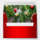 This red Christmas envelope features a beautiful traditional theme of red and green with red pine needles and Christmas decorations on the inside of the card, and a festive red metallic solid colour for the outside. This envelope would be ideal for any Christmas greeting or home-made Christmas cards.