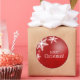 Decorate your gifts with this customisable Christmas ball ornament sticker with white snowflakes on red and Holidays greetings.