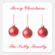 Red Christmas Balls decoration photo with text Square Sticker