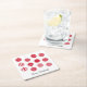 A paper coaster with red and white Christmas balls and a 'Merry Christmas' text. Customise the paper coaster with your own text, background colour among other options.