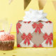 A modern pattern of big red Christmas bows on a background of neutral checker squares and faux pearls. Perfect to add a modern touch to your gifts this Christmas!